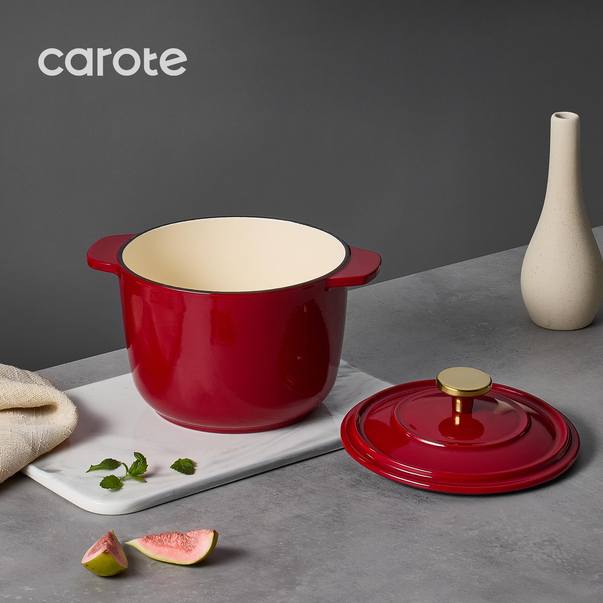 - Classic Design: Carote enameled cast iron rice pot features a porcelain-enameled shell and a spray-painted finish for durability and stylish aesthetics that complement any kitchen. Our mini cast iron casserole features sturdy double handles and a matching lid, and its ergonomic design makes it easy to move from stovetop to oven.