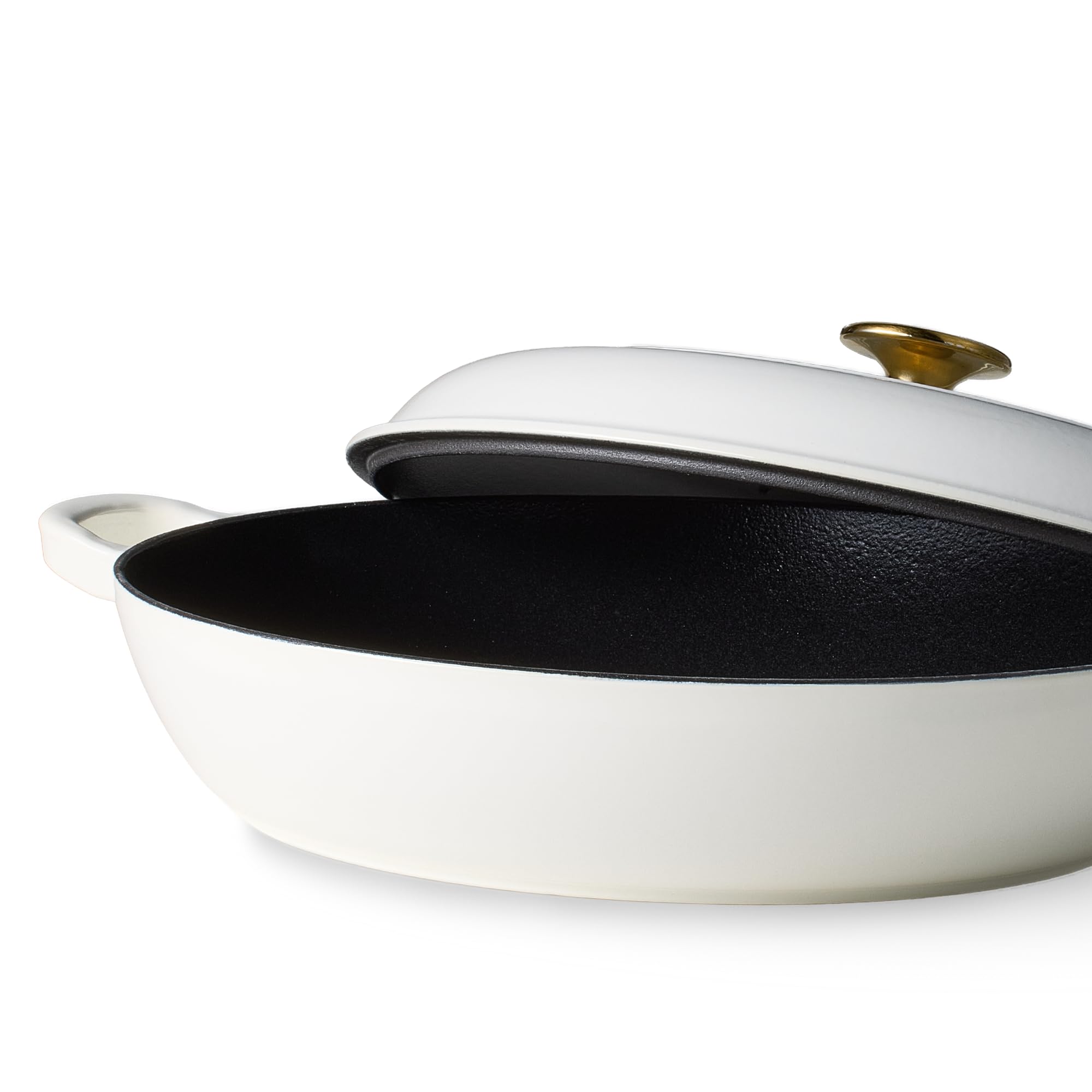 -43%CAROTE 3.4QT Enameled Cast Iron Braiser Pan, Shallow Dutch Oven Casserole Skillets, Non-Toxic Cast Iron Pot with Lid for Grilling, Searing, Baking, Dual Handles, All Stovetop Compatible, White—
